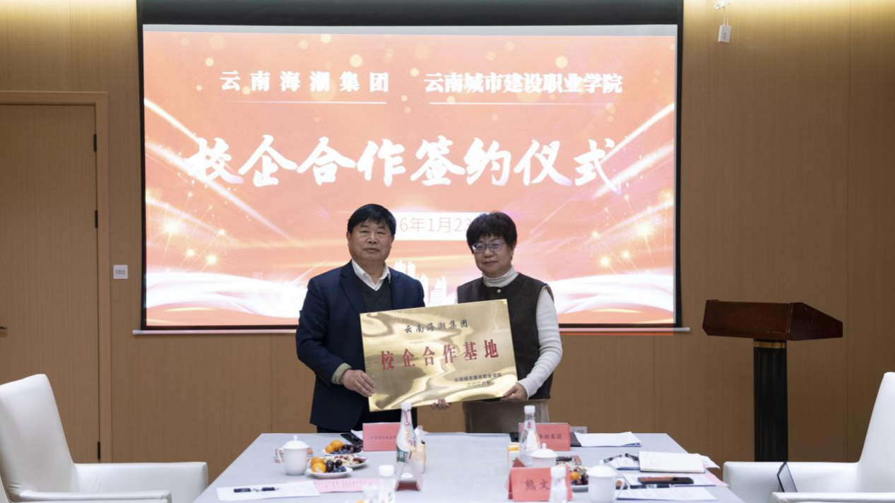 云南海潮集团相关负责人详细介绍了企业的发展态势、业务布局及人才需求,为学校优化专业设置、完善人才培养方案提供了重要参考。校长李善华一行结合学校办学特色与专业优势,就学生实习实践、订单式培养,课程共建、师资共享、实训基地建设等深入进行交流,校企双方代表现场签署校企战略合作协议并互授牌匾。