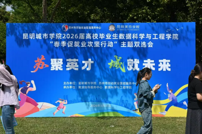 为深入落实云南省教育厅关于做好2026届高校毕业生就业工作的决策部署,抢抓春季求职关键期,3月31日,昆明城市学院与苏州市劳动就业管理服务中心在海源校区共同举办“苏聚英才 城就未来”2026届毕业生春季促就业攻坚行动主题双选会。旨在进一步拓宽毕业生就业渠道,深化产教融合与校地合作,推动毕业生实现更加充分、更高质量就业。“健康昆城430行动”非遗文化体验、校地校企合作签约仪式等系列活动同步开展。