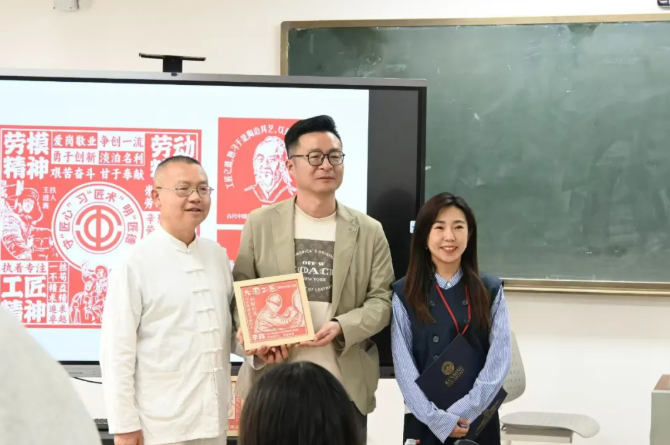 活动期间,“健康昆城430行动”系列之非遗文化体验环节同期举办。国家级非遗技艺专家现场展示传统传拓技艺,并指导企业家代表与毕业生动手实践,在体验中感受中华优秀传统文化的魅力,也增强了企业对学校美育与人才培养特色的认同。现场,专家将亲手制作的拓印作品赠予企业代表,一方纸拓,既凝结文化匠心,也寄托了校地双方深化合作、共赢未来的美好愿望。