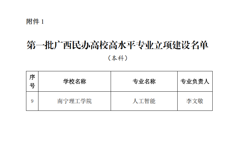 近日,根据《自治区教育厅关于公布第一批广西民办高校高水平专业建设项目立项名单的通知》(桂教民办〔2026〕2号),我校人工智能专业成功获批成为第一批广西民办高校高水平专业建设项目立项单位。此次立项不仅体现了自治区教育厅对我校人工智能专业建设水平、人才培养质量及发展潜力的充分肯定,更是我校在学科专业建设领域取得的重要突破性成果。