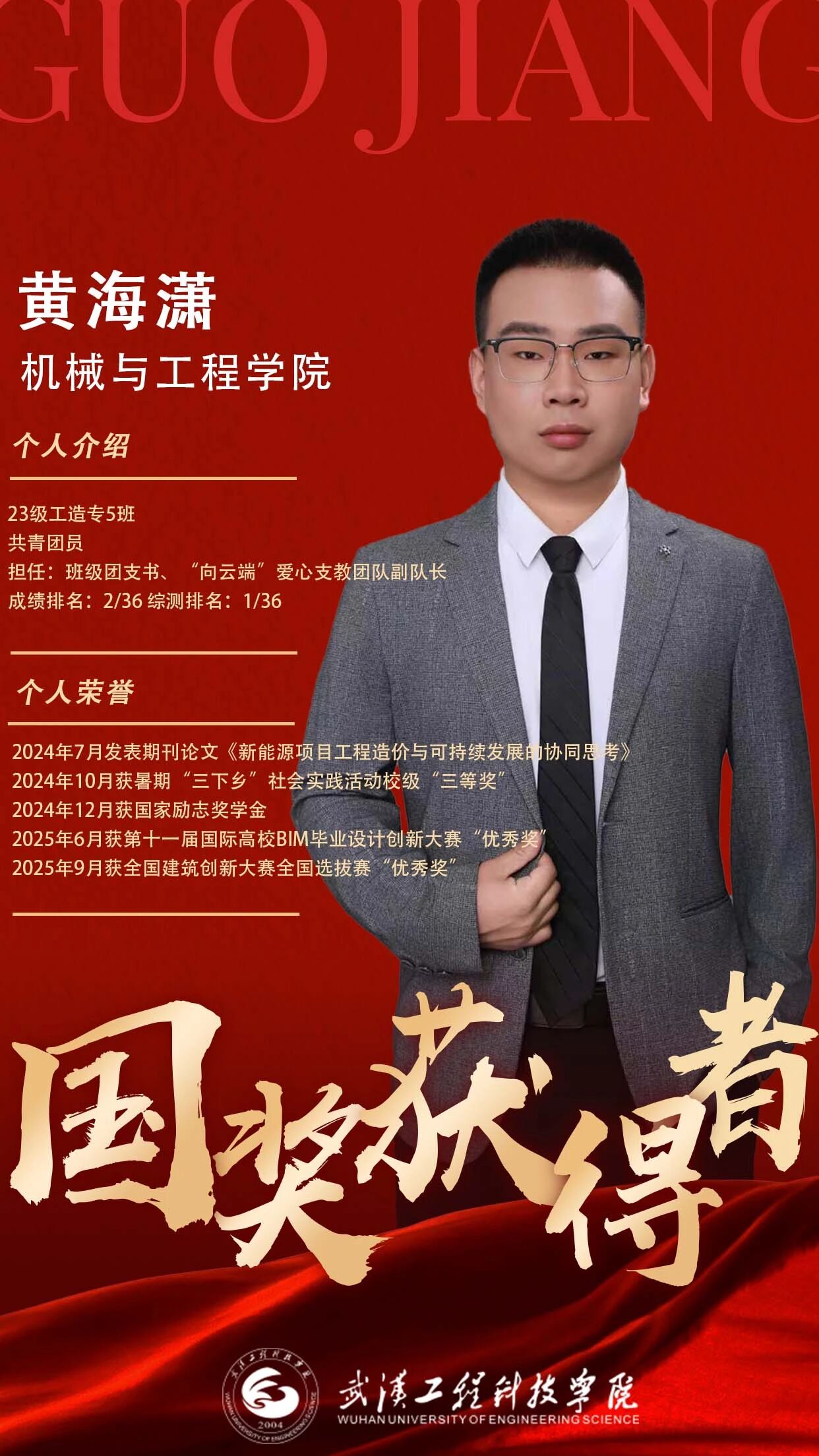 梦虽遥,追则能达;愿虽艰,持则可圆。黄海潇对未来始终有着清晰规划:短期内,他计划在巩固专科知识的基础上,全力备战“专升本”考试,争取进入本科阶段深造,进一步夯实专业根基;长远来看,他将深耕工程造价领域,持续精进专业学识。“我期待自己不仅能成为一名优秀的专业人才,更能成为一个有温度、有担当、对社会有积极贡献的人,我将持续学习,不断成长。”黄海潇分享道。