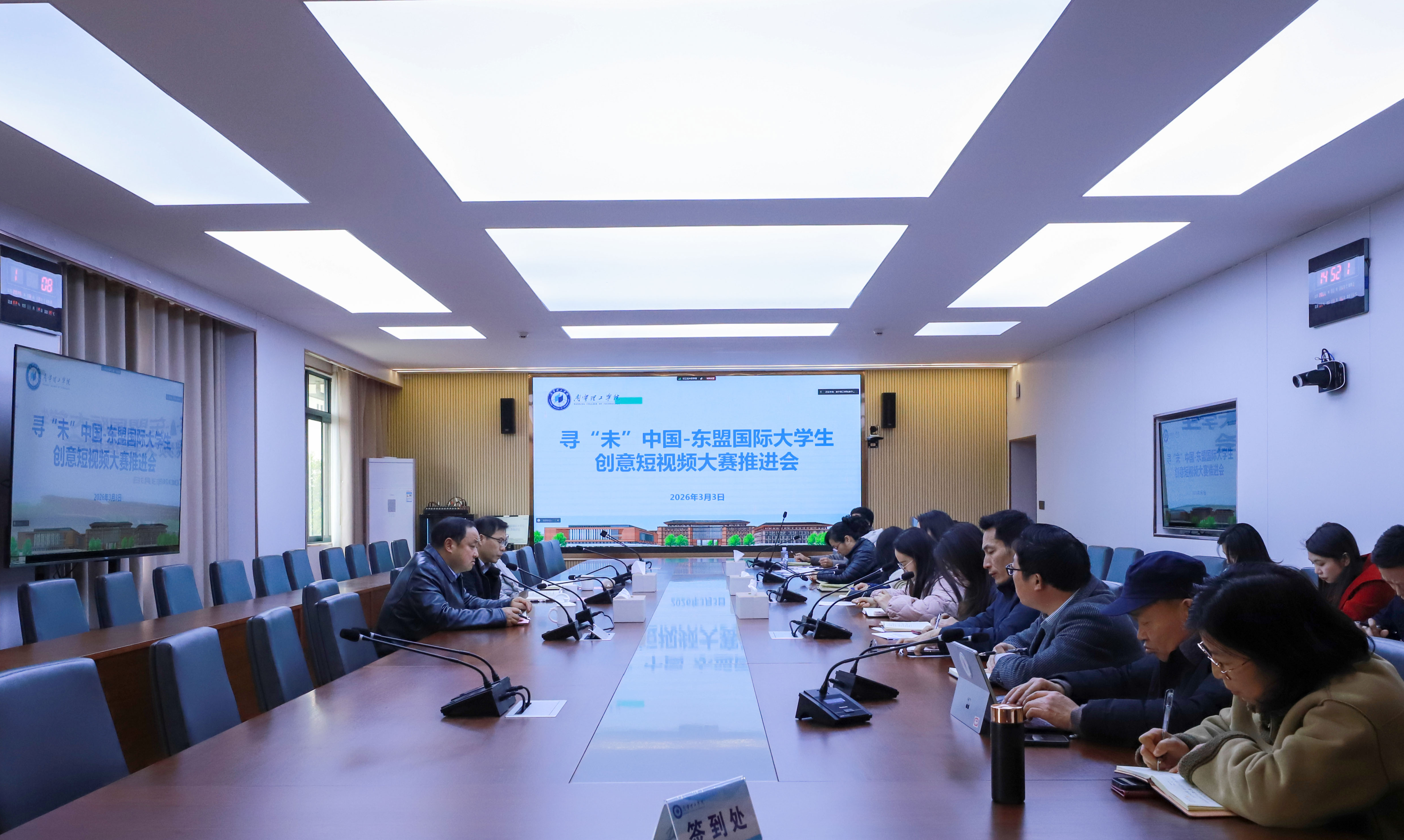为扎实推进首届寻“未”中国-东盟国际大学生创意短视频大赛各项工作,统筹协调解决赛事后期重点难点问题,确保大赛高标准、高质量圆满完成,2026年3月3日,我校在南宁校区图书馆619会议室、桂林校区3324会议室同步召开大赛推进会议。全体校领导、中层干部及大赛相关工作人员参会,会议由大赛组委会秘书长韩乔主持。