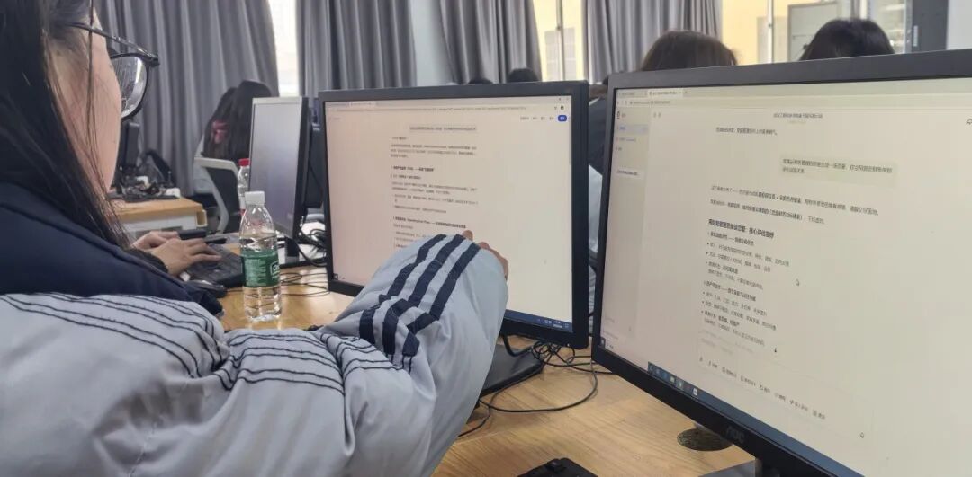 在《数据采集》课上,刘玲老师则带领学生直面AI应用的另一个痛点——误差与偏差。针对传统数据采集效率低、误差大、长尾场景获取难等现实问题,她详细讲解了AI在数据采集领域的优势及应用场景,并演示了多款主流AI采集工具的操作流程。但在实操环节,她并未让学生盲目信任AI的输出结果,而是引导学生自主判断采集需求、筛选数据源,并运用课堂所学的校验方法,主动修正AI采集带来的偏差。