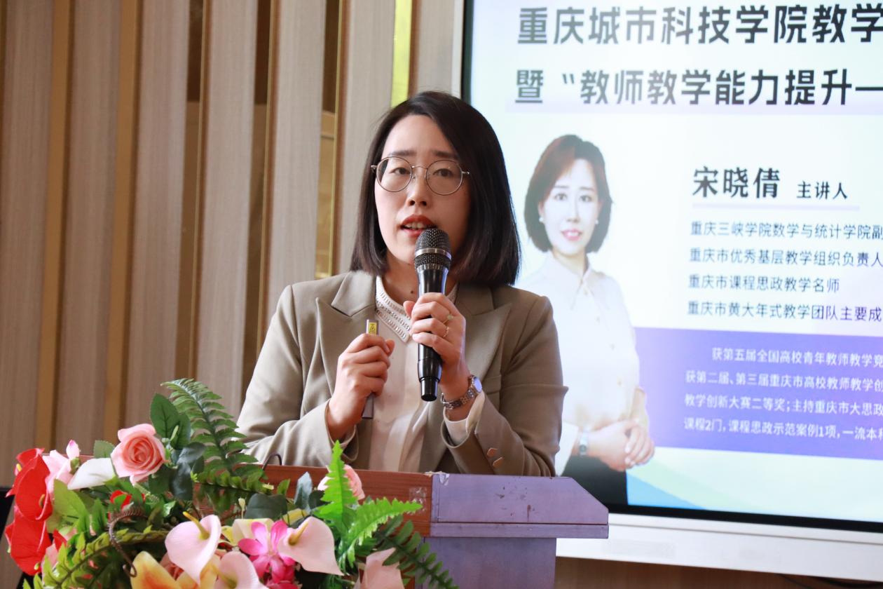 启动仪式后,宋晓倩副教授带来专题培训讲座。她系统解读了近几届青年教师教学竞赛相关文件与赛事要求,结合自身丰富的参赛经验与教学实践,详细分享了教学设计优化、PPT 制作规范、课堂展示技巧等关键备赛要点,重点强调课程思政有机融入与AI 赋能教育教学的创新路径,为参训教师备战青教赛、提升教学创新能力提供了全面、精准、务实的指导。