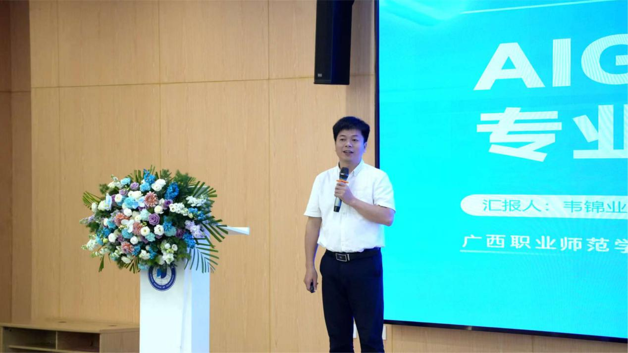 广西工艺美术协会常务副理事长、广西职业师范学院传媒学院院长、正高级工艺美术师韦锦业以《AIGC时代设计新范式与专业教学实践》为题进行了分享。韦教授立足真实课堂案例,围绕人机协同与人文价值核心,剖析学生在AI应用中的工具崇拜、文化错位等问题,提出设计思维、教学实践、批判性思维、实物落地、创意民主化、数字人文六位一体教学路径,强调以人工修正、文化溯源、工艺落地守住设计教育本质,为AIGC背景下设计类专业教学改革提供了清晰可行的实践方案。