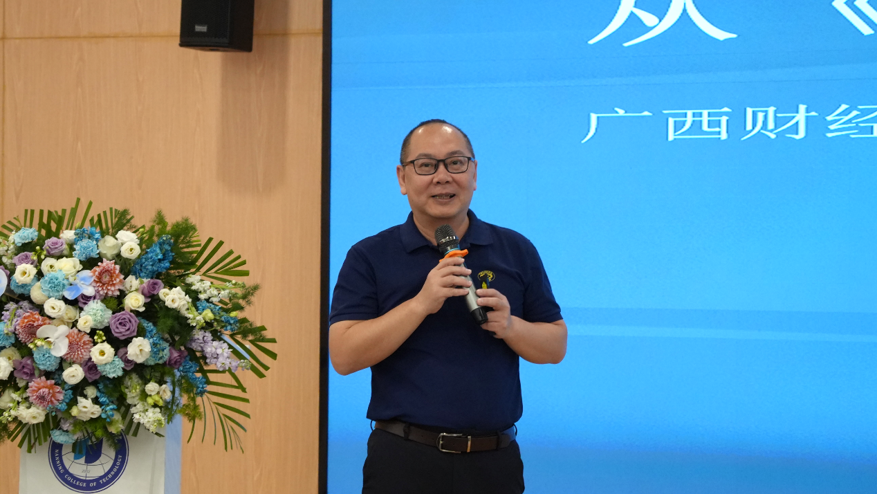 广西财经学院大数据与人工智能学院副院长、中国计算机学会南宁分部秘书长胡小春教授带来了题为《从通识课堂到专业赛场:人工智能赋能教学全场景与育人新生态》的报告。胡教授通过以赛促学的丰硕成果与AI创新能力的赛场检验,阐述了产学研用协同与东盟跨境合作布局,为培养复合型人才提供了可复制的创新路径与实践范例,并系统介绍了广西财经学院“AI+财经”人才培养体系,涵盖AI通识教育全覆盖、分层分类课程建设、“广财小智”虚拟仿真平台应用、混合式与项目式教学改革等核心内容。